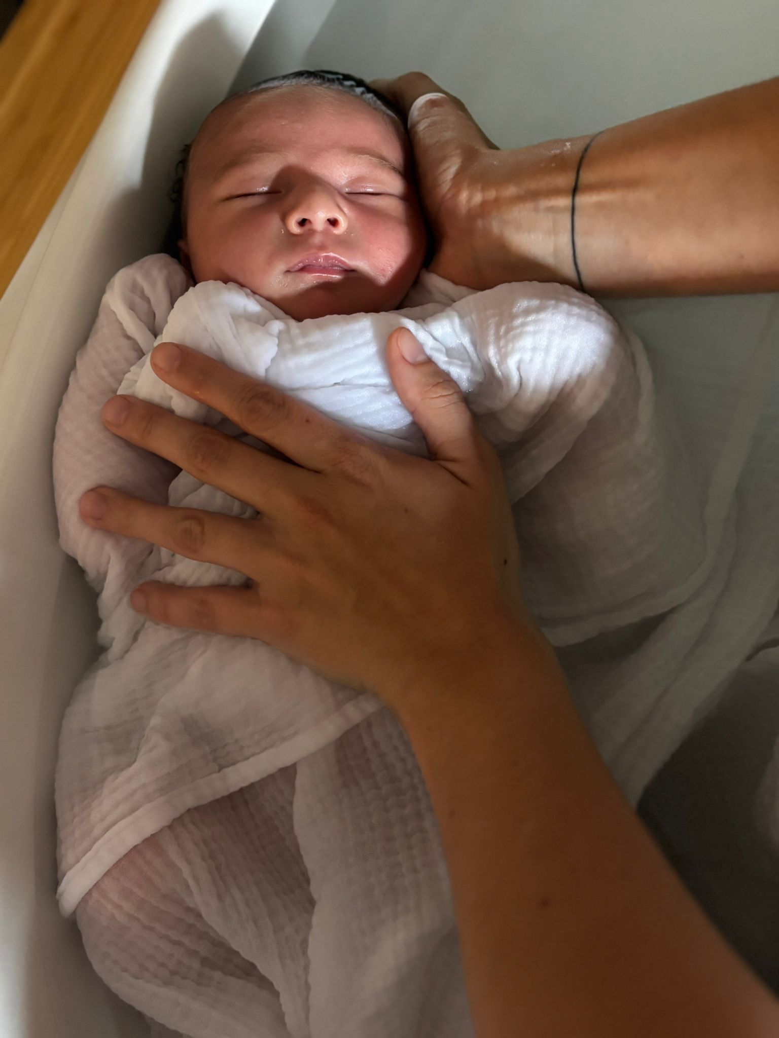 Ce bain est un véritable rituel d’accueil. Dans une eau à température corporelle, bébé retrouve les sensations apaisantes vécues in utero. Ce moment lui permet de libérer les tensions éventuelles liées à la naissance, de déposer ses émotions, et de retrouver un état de calme et de sécurité. Il s’agit aussi d’un espace pour vous, parents, pour vous reconnecter à votre bébé dans une bulle de lenteur, de silence et de tendresse.